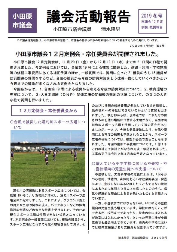 皆様こんにちは。小田原市議会議員の清水たかおです。