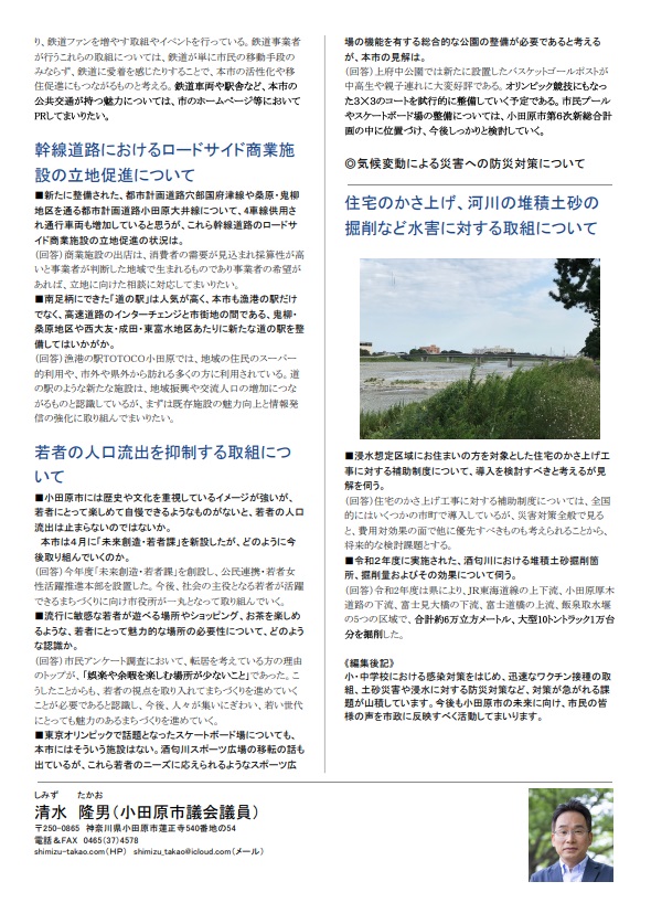 皆様こんにちは。小田原市議会議員の清水たかおです。