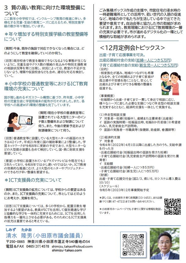 皆様こんにちは。小田原市議会議員の清水たかおです。