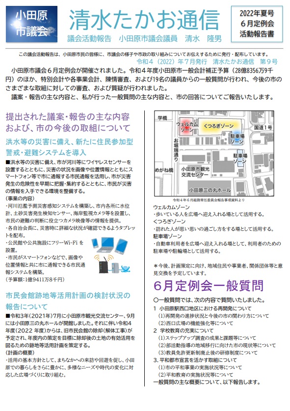 皆様こんにちは。小田原市議会議員の清水たかおです。