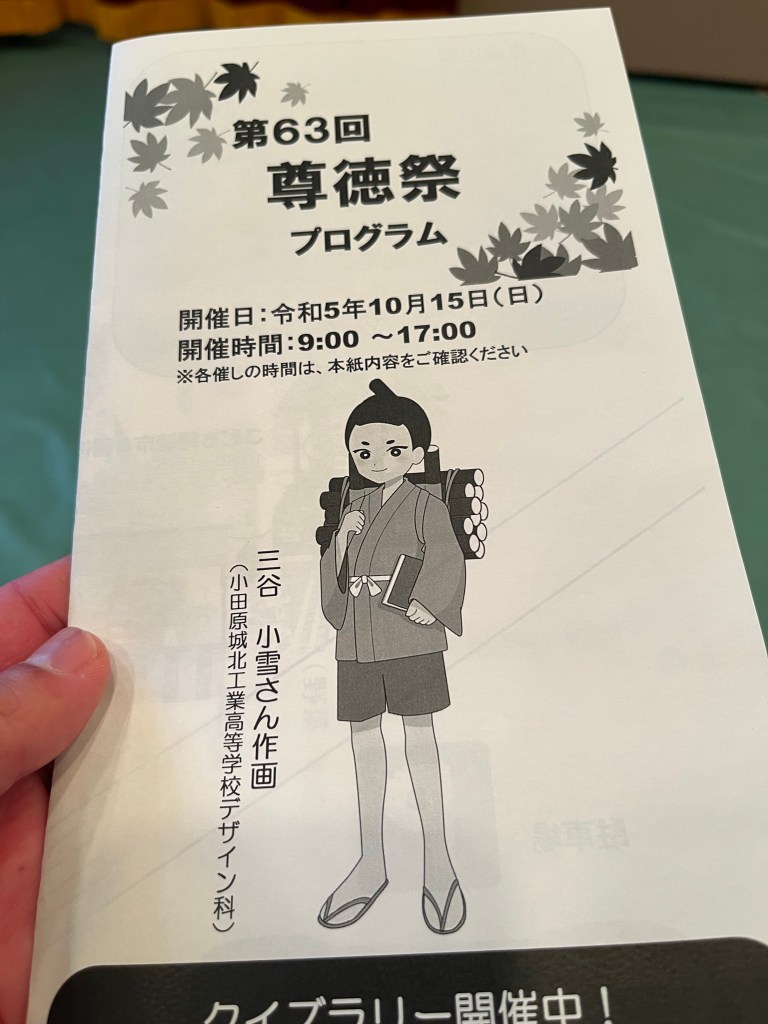 栢山の尊徳記念館で開催された第63回尊徳祭に出席しました。開会式に続き、ポスター原画と小学生の作文の発表および表彰が行われました。小学生の発表では、尊徳の教えと自分との関わりについて、それぞれが自分が頑張っているスポーツなどに教えを活かしている様子が良く表現されていて、聞き応えがありました。